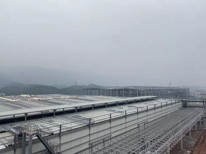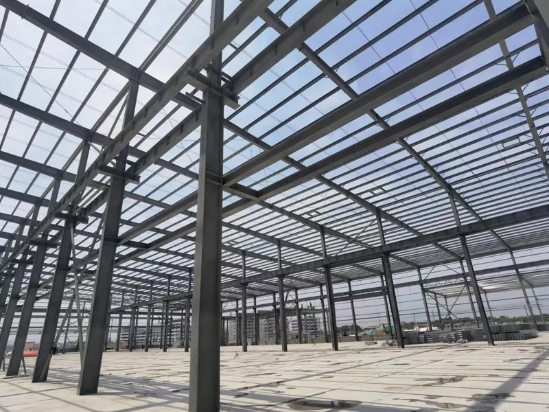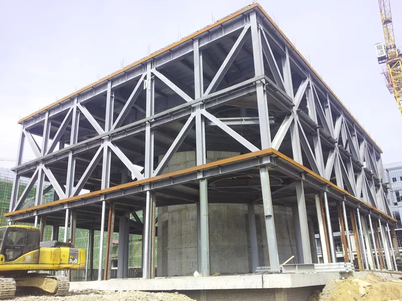 Hoofsaaklik bestaan ​​uit staalkolomme, staalbalke, staalbande, ens., Wat in 'n raamstruktuur saamgestel word deur sweiswerk, boutverbindings, ens.