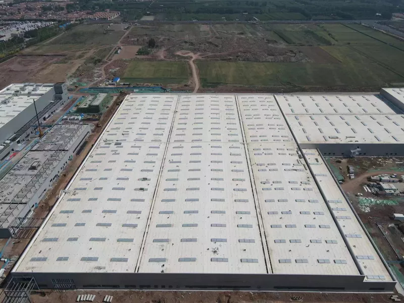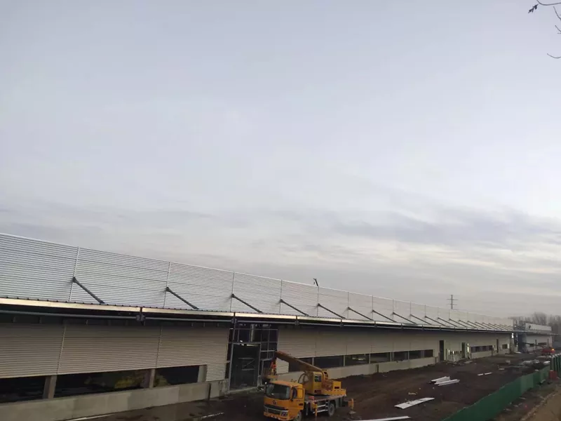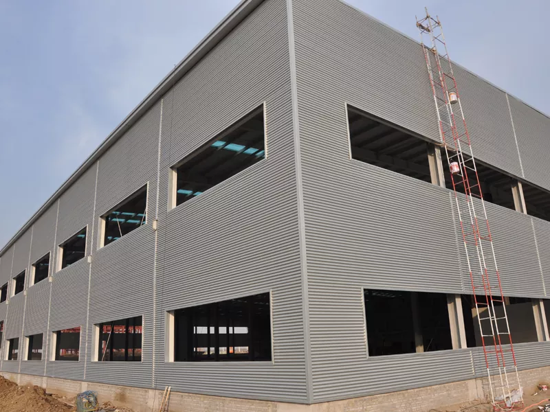 Die muurstelsel met 'n groot span staalstruktuur is 'n doeltreffende en geïntegreerde omhulseloplossing. Hierdie stelsel bestaan ​​uit twee lae metaalpanele aan die binnekant en buite, met 'n isolerende kernmateriaal tussenin, gevorm deur 'n deurlopende rolvormingsproses. Dit skep 'n muureenheid wat krag, isolasie en dekoratiewe funksies kombineer. Met 'n selfgewig van slegs ongeveer 15-25 kg/m², verminder dit die las op die hoofstruktuur aansienlik, wat dit veral geskik maak vir die streng liggewigvereistes van groot-spangeboue. Hierdie muurstelsel bied buitengewone hoë installasiedoeltreffendheid en aanpasbare oppervlakkleure en teksture, wat die skepping van 'n moderne en eenvoudige fasade in groot kommersiële komplekse moontlik maak. Daarbenewens verminder die ontwerp van die termiese brugonderbrekings die algehele hitte -oordragskoëffisiënt van die gebou, wat energie -doeltreffendheid verhoog.