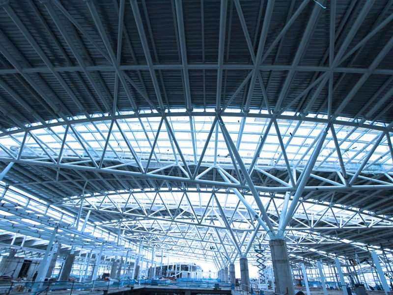 5. Dakbedekking en buitebekleding Sodra die staalraam voltooi is, word die dakstelsel geïnstalleer, gewoonlik met behulp van geïsoleerde metaalpanele of enkellaag membraanmateriaal. Buitemure, indien by die ontwerp ingesluit, word ook geïnstalleer deur metaalpanele, baksteen of ander bekledingsmateriaal te gebruik.