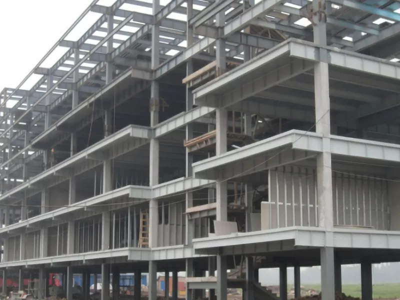 ● Kolomme en balke: Die raamwerk van die gebou bestaan ​​hoofsaaklik uit staalkolomme en balke. Hierdie komponente is ontwerp om die gewig van die struktuur te dra en vragte eweredig te versprei.