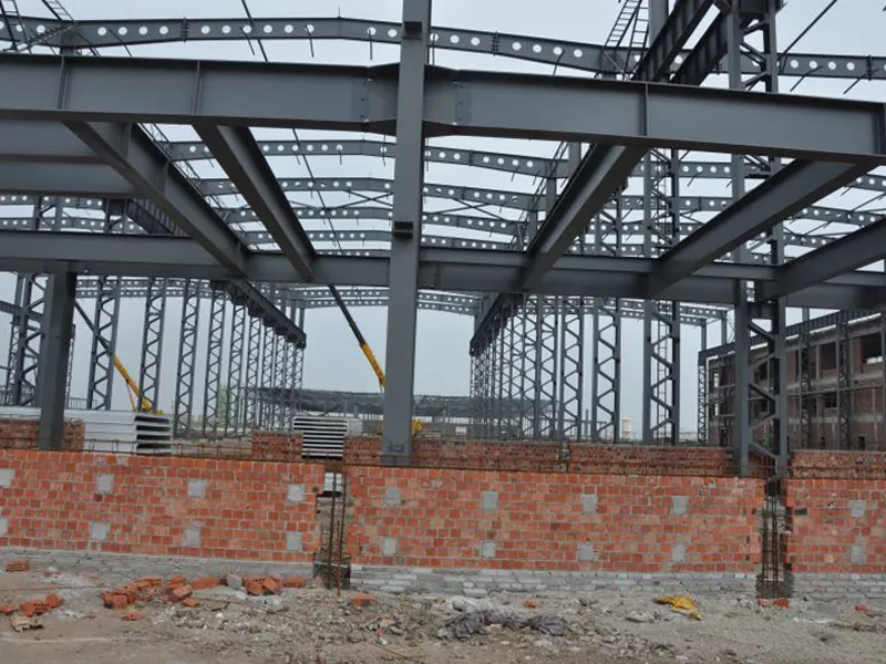 Tweedens presteer die enkelvloer-staalpakhuisgebou in 'n lasdraende kapasiteit. Met behulp van staal as die primêre lasdraende komponent, het dit hoë sterkte en taaiheid, wat in staat is om verskillende soorte vragte te weerstaan, insluitend dinamiese en bewegende vragte. Dit verseker sy uitstekende prestasie in die hantering van komplekse en swaar industriële produksietake.