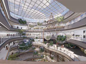 Die Japannese Fukaya-tuinwinkelswinkelsentrums: met 'n staalstruktuur met 'n gedeeltelike tweeverdieping-ontwerp, het die buitemure van die gebou 'n geplooide voorkoms soos origami, wat dit 'n kenmerkende kenmerk van die winkelsentrum maak. Die voedselhof is op die tweede verdieping geleë en bied 'n dubbele uitsig oor die winkelsentrum en die verberge.