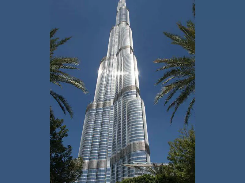 ● Die Burj Khalifa in Dubai, UAE, is die wêreld se hoogste gebou, met 'n hibriede raam van staal-beton. Dit staan ​​op 163 verdiepings en meer as 828 meter lank.