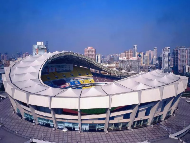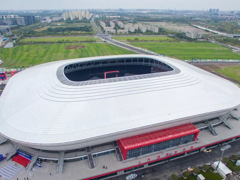 3. Die hoofstruktuur neem 'n grootspan-ruimtelike kap- of roosterstelsel aan, wat 'n kolomvrye oop ruimte skep, wat onbelemmerde sienings vir alle toeskouers verseker en die vermoë om 'n supergroot dak te dek om aan alle vereistes vir die gebruik van die weer te voldoen.