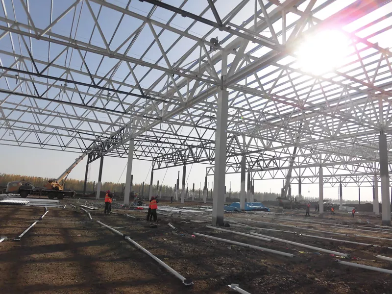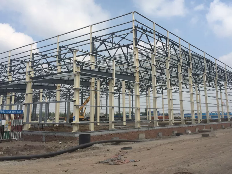 Die staalraam van die werkswinkel bestaan ​​tipies uit kolomme, balke en draadjies, wat met mekaar verbind is om 'n stywe en stabiele struktuur te vorm. Die staallede word dikwels in 'n fabriek vooraf vervaardig en dan na die terrein vervoer vir die montering, wat die konstruksietyd aansienlik verminder.